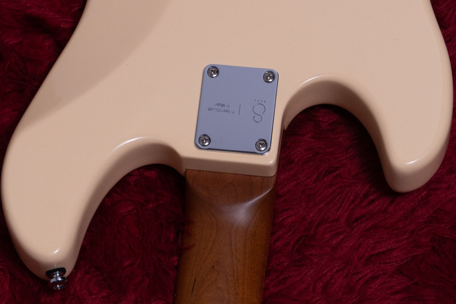 ネックにはサテン塗装が施されたローステッドメイプルを採用。