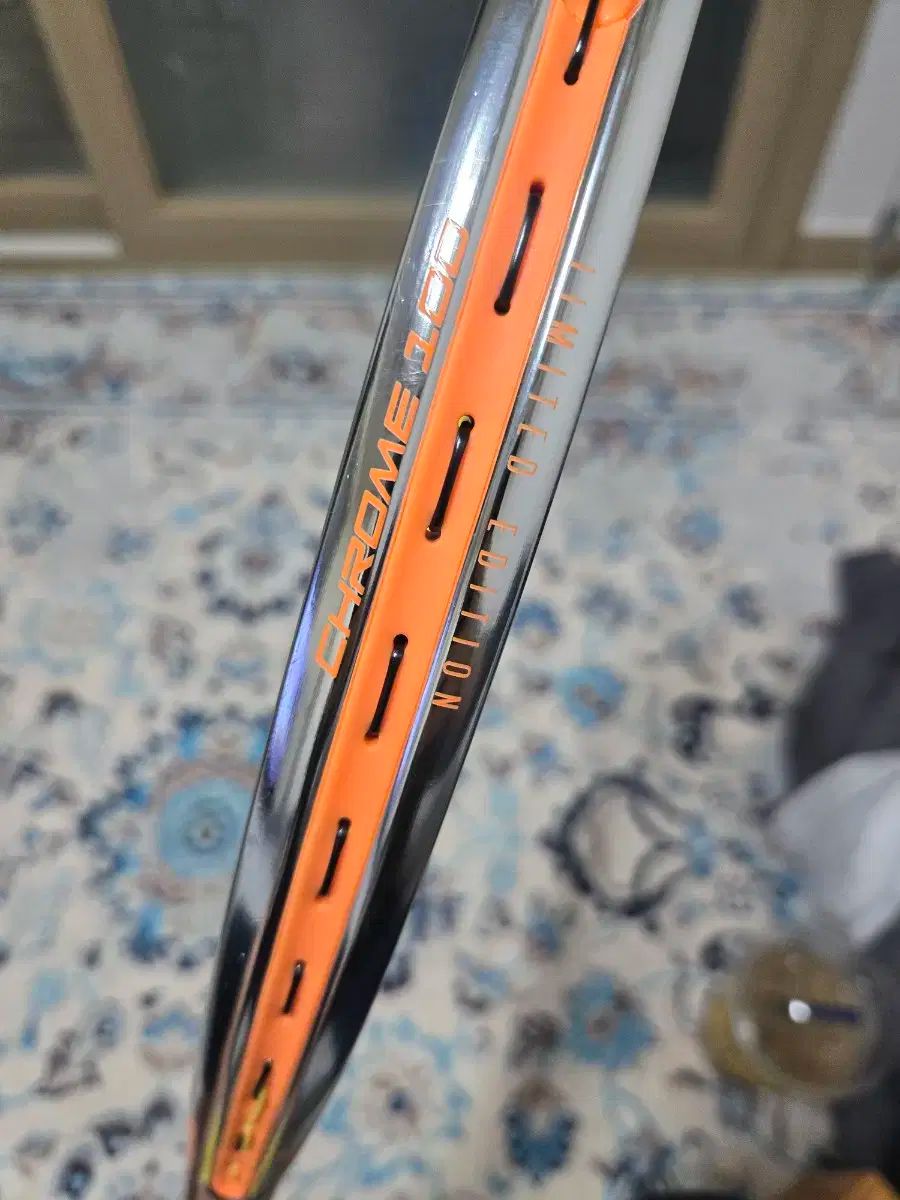 これはプリンスPL 1025テニスラケットです。シルバーのフレームにはオレンジ色のPrinceロゴがアクセントになっています。ラインも万全の状態なので、すぐに使えます。ご不明な点がなければ、すぐに安心してお支払いいただけます!