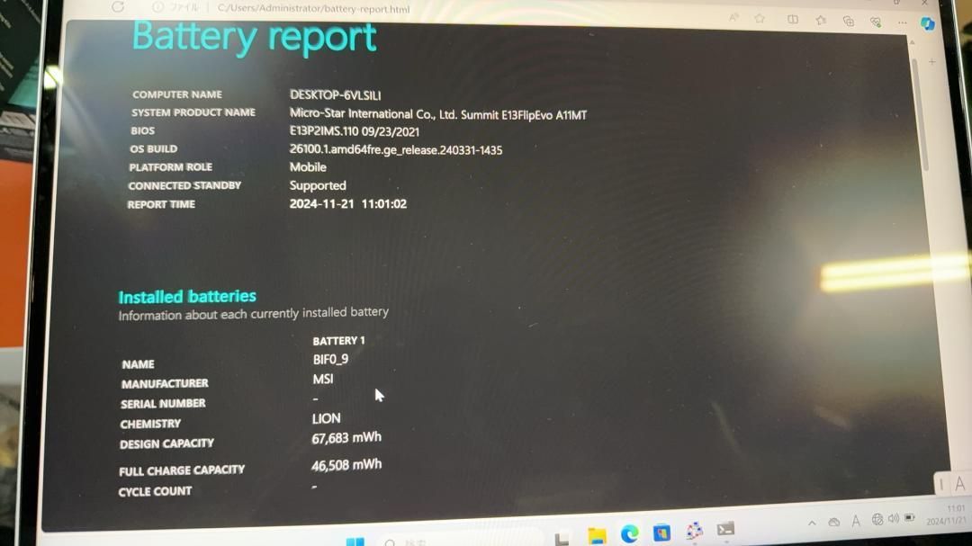 バッテリーレポートは画像通り、ご確認ください。