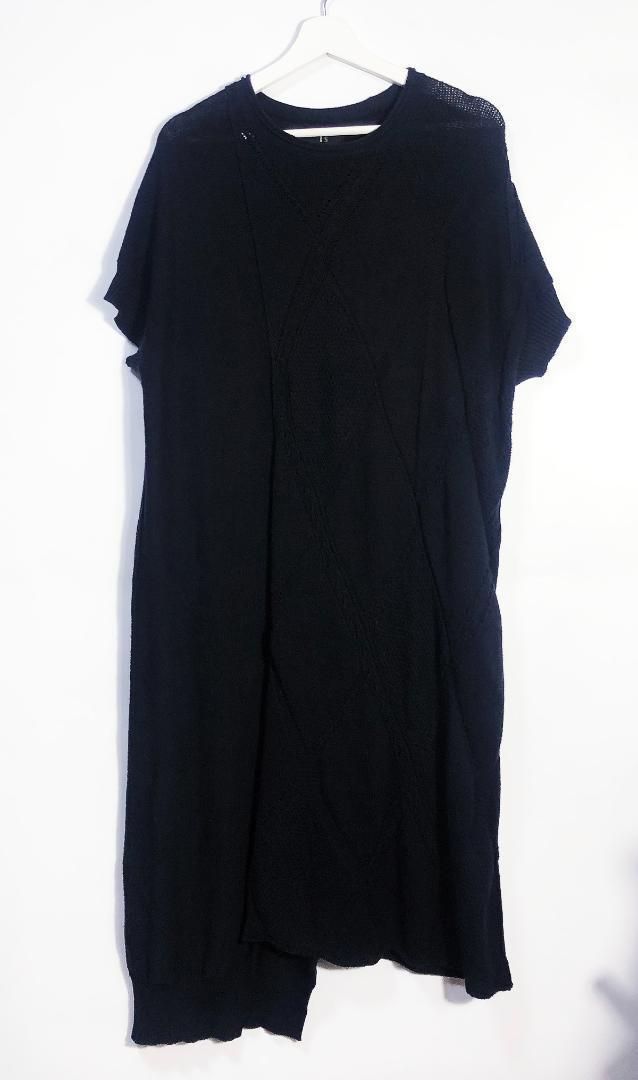 品 Y s ワイズ ヨウジヤマモト ドルマン袖 ニット編み込み 変形 ロング ワンピース ブラック