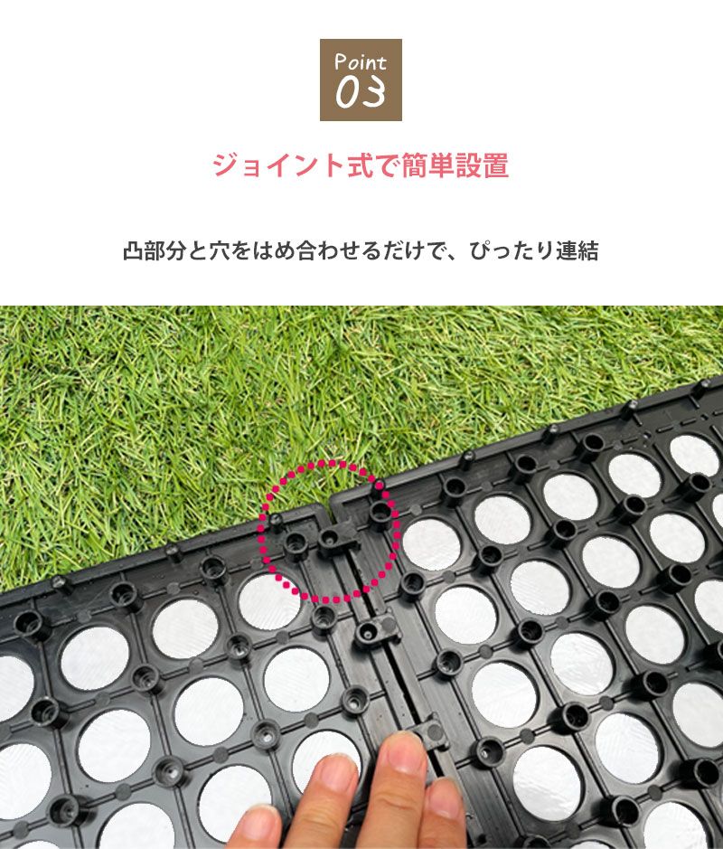 ●このジョイントタイルは、エクステリアやガーデニングの床材としても最適で、見た目を美しく演出しながら、機能性を兼ね備えています。日本製で品質も保証されており、安心してご利用いただけます。暑い季節の屋外生活をより快適に、そしてスタイリッシュに彩るジョイントタイル遮熱パネルで、この夏を乗り切りましょう。