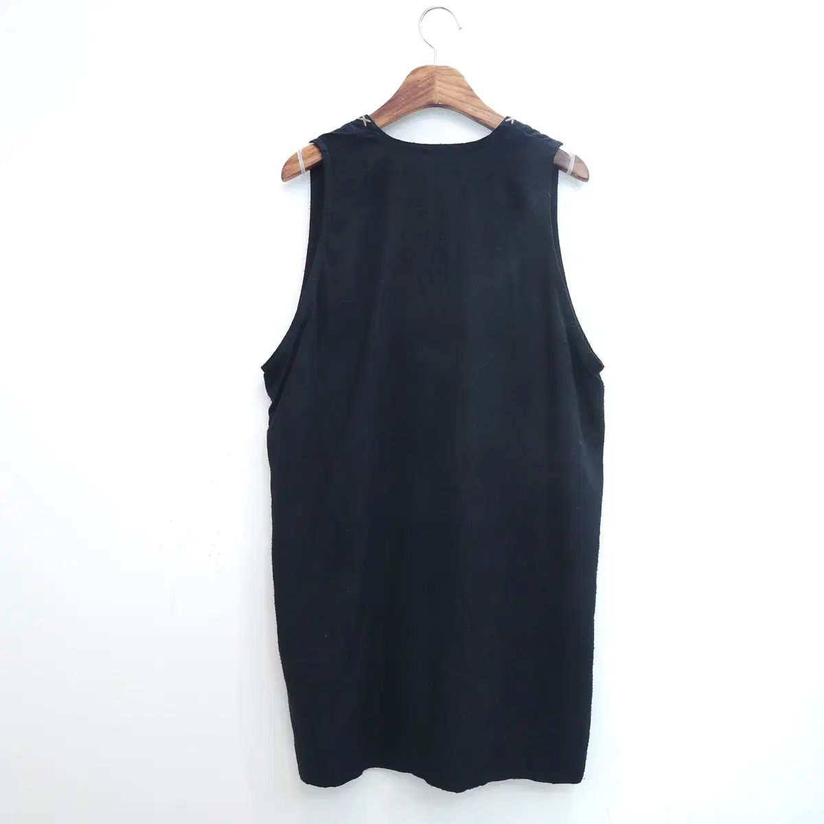 ブラックにブラウンのステッチとリボンのディテールが施された、豪華でビンテージなベストです。
