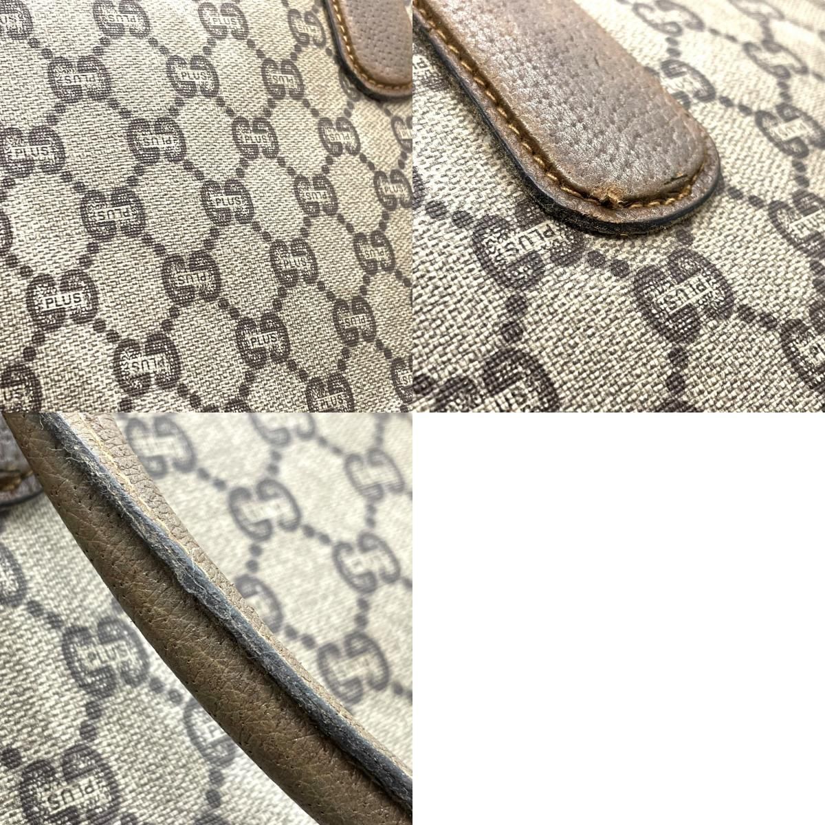 GUCCI グッチ GGプラス グッチプラス ハンドバッグ グレー ベージュ PVC レザー ゴールド金具 ヴィンテージ レディース A