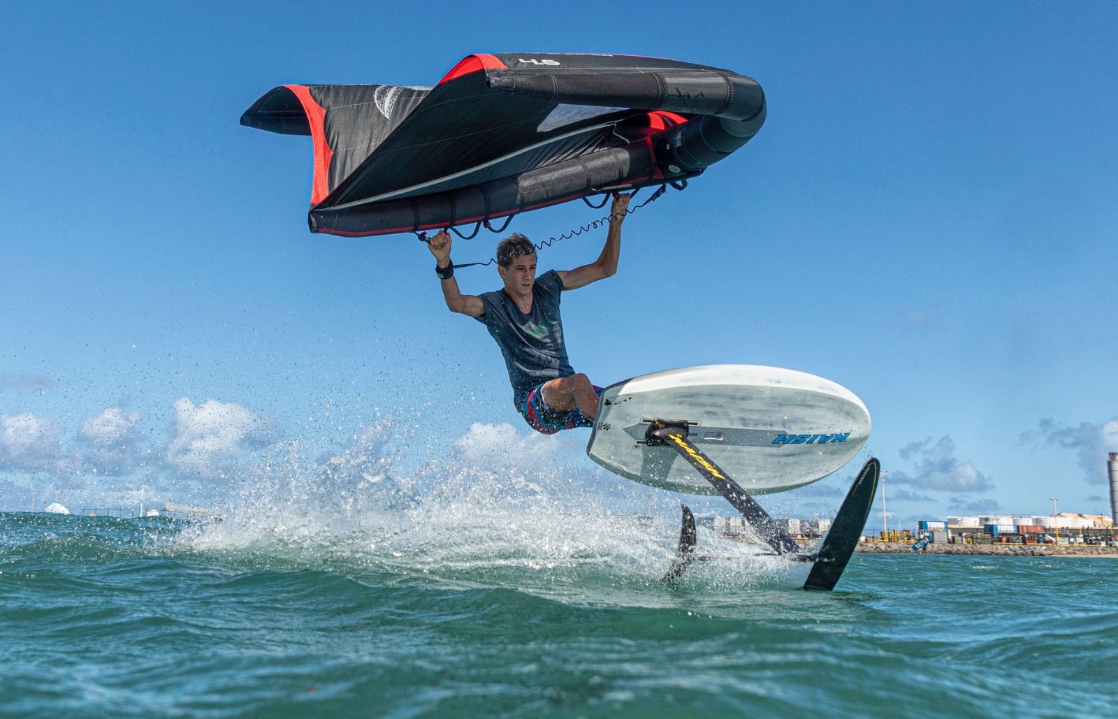 Hover wingfoil Alana 75LはHover wingfoil Carbon Ultraと同じコンストラクションとデザインでグラフィック違いとなっています。適度なロッカーとポイントノーズはポップアップ時の水離れが良く、フォイリング時にはそのスウィングウエイトの最小化により軽快なフォイリング感が特徴です。特にラフ海面でのウェイブライドも容易なコントロール性能を体感できるデザインです。
