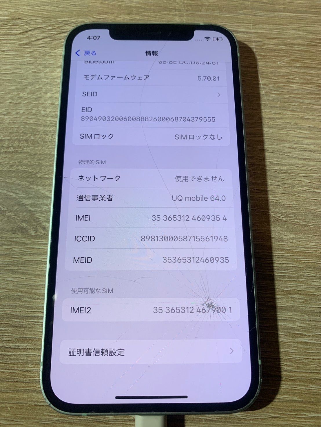 画面にひび割れがありますが、動作に支障はありません。