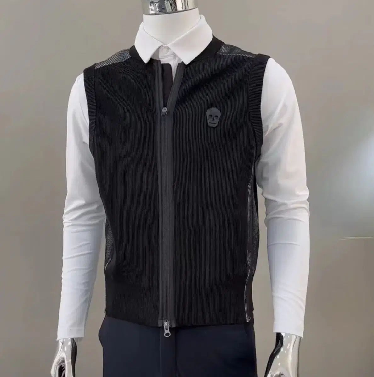 ブラックカラーのメンズゴルフウェアベストです。