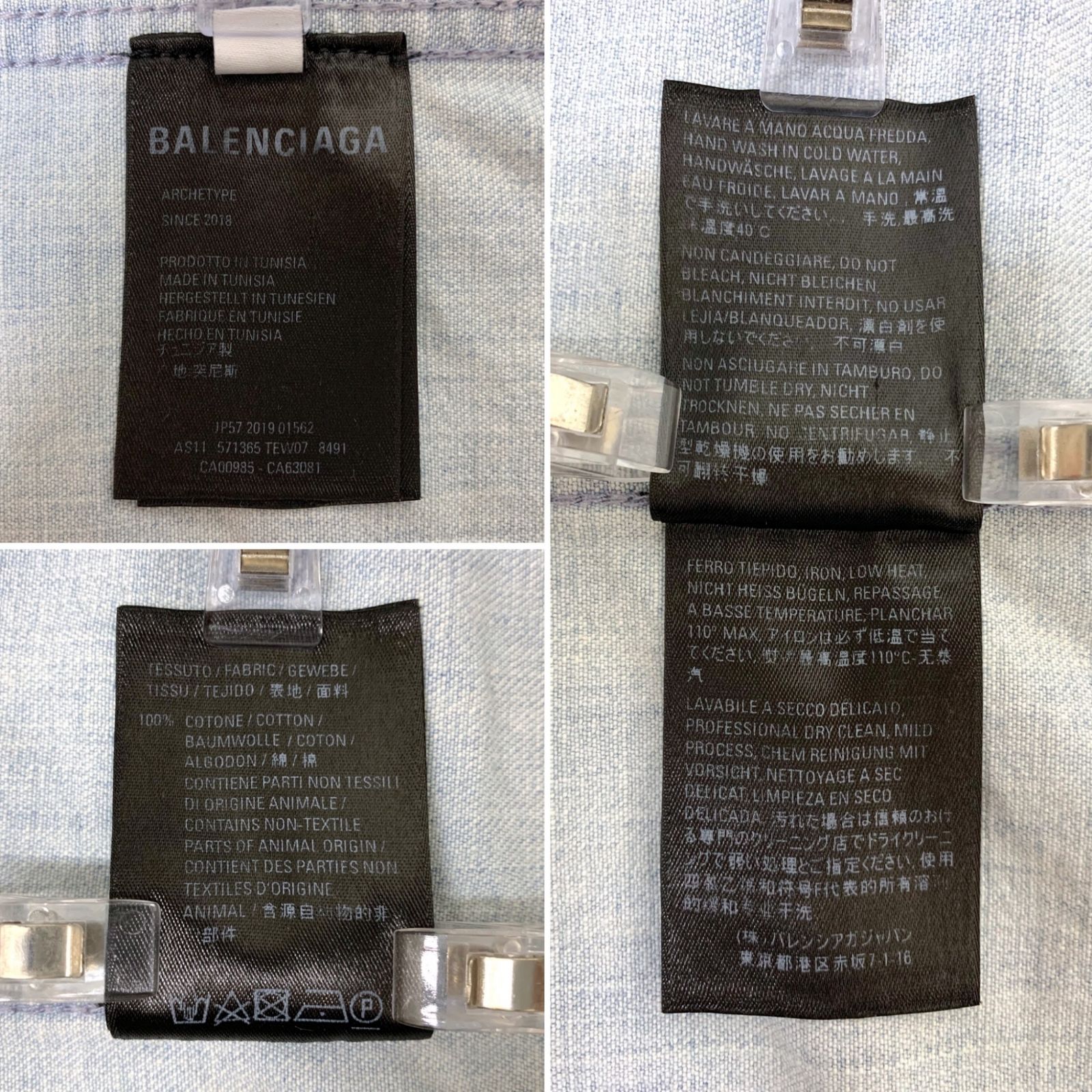 バレンシアガ デニム 長袖シャツ バックロゴ ボタンダウン ユーズド加工 509534 TYE 24 39 ブルー メンズ 036