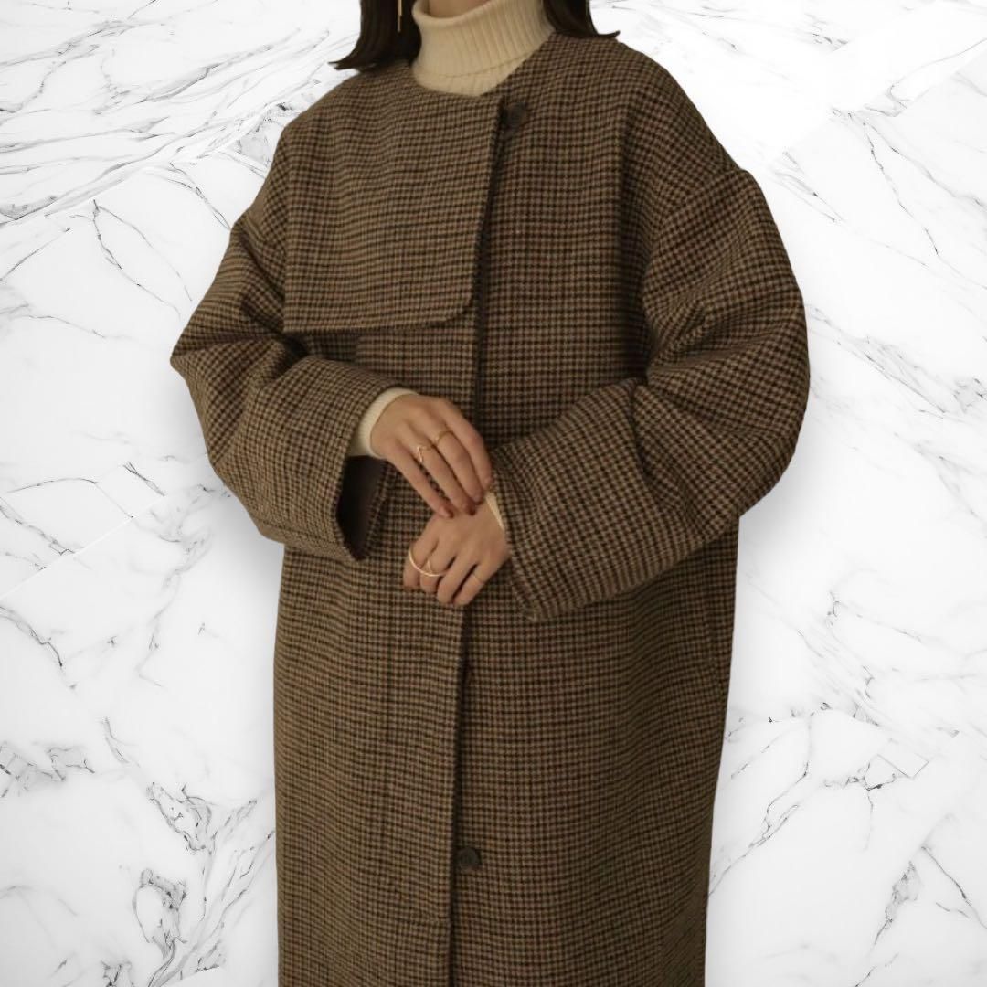 Eaphi no collar wool check coat ウール
