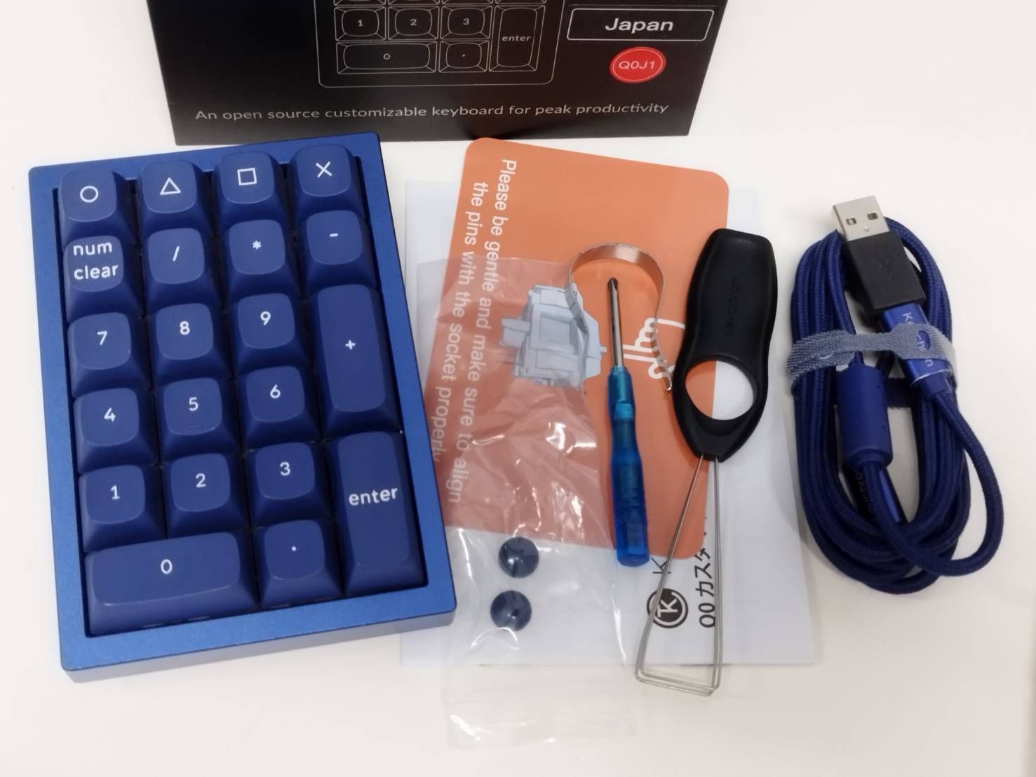 本体、ケーブル、スイッチプラー、キーキャッププラー、ねじ回し、印刷物(画像1枚目に写っているもの)