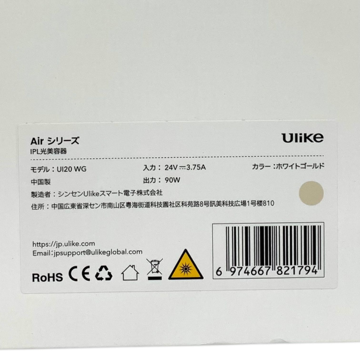 【商品名】Airシリーズ IPL光美容器 UI20 WG