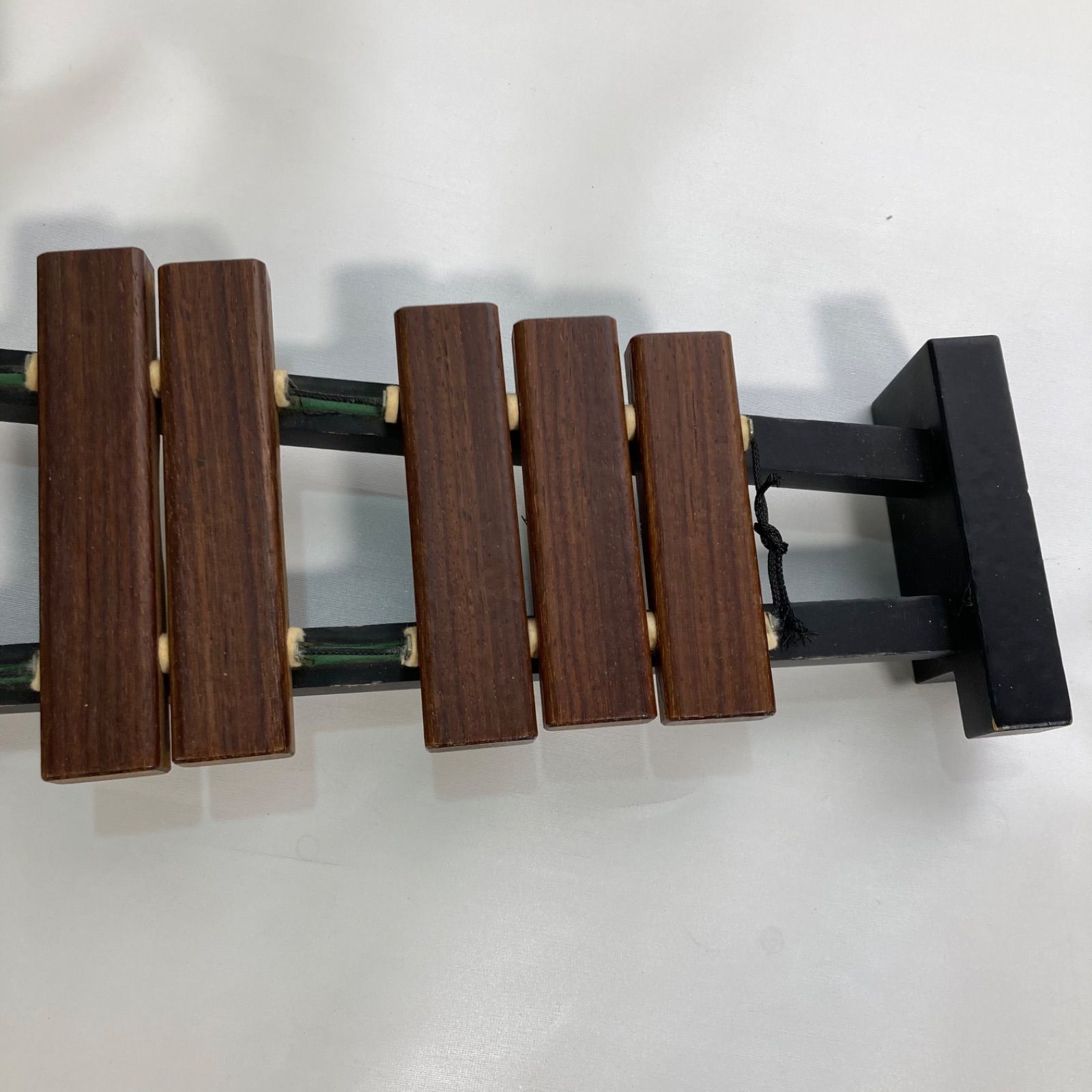全体的に傷や汚れ、使用感ありです。木琴同士を繋ぐための木が片方折れています。