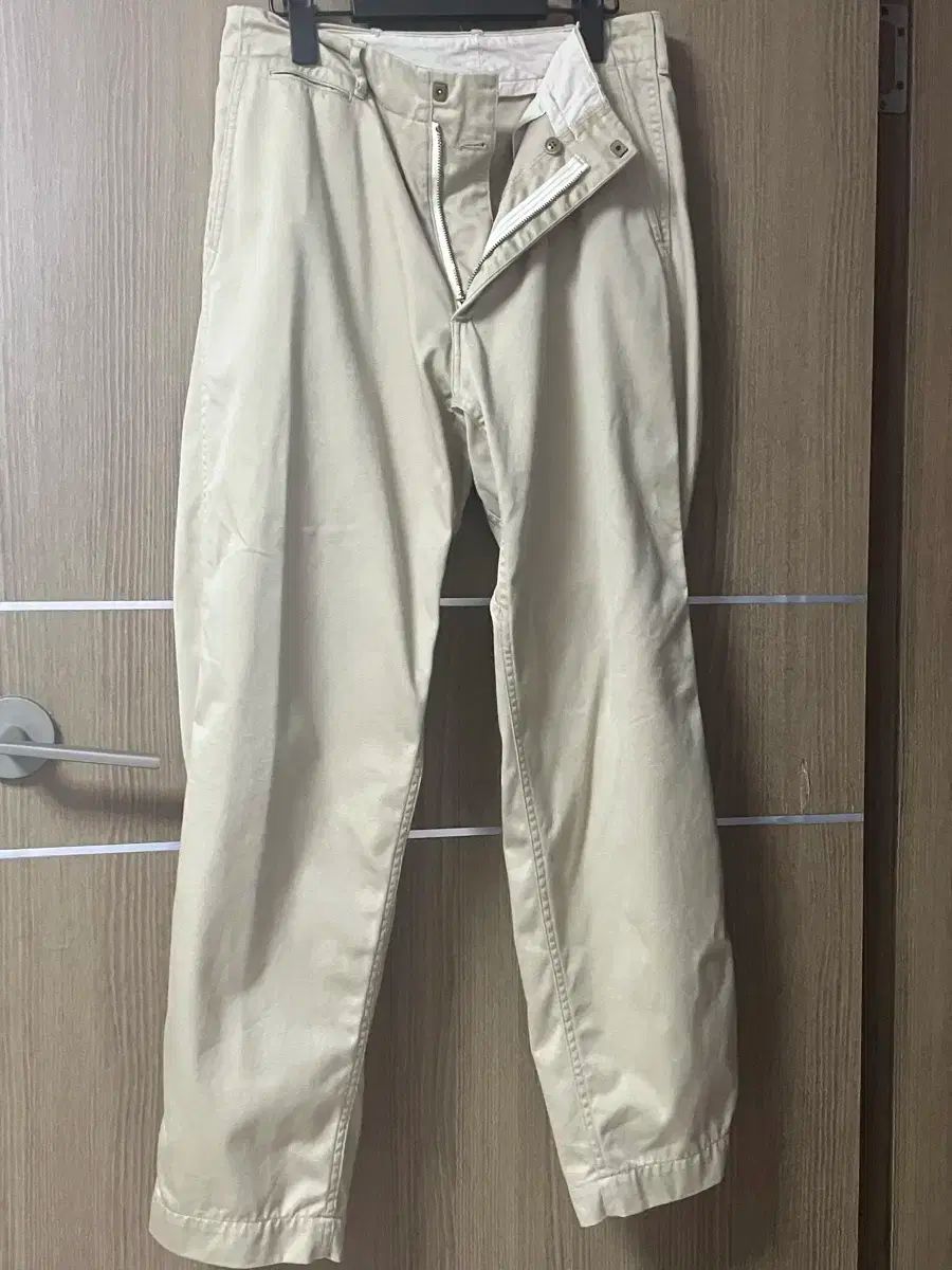 22ssシーズンに出た商品かと思います。購入後数回着用しただけで、きれいです。汚れや傷はなく、全体的な外側の状態は写真でご確認ください。サイズは30で、universalジッパーが付いています。予備のボタンとタグもお付けします!