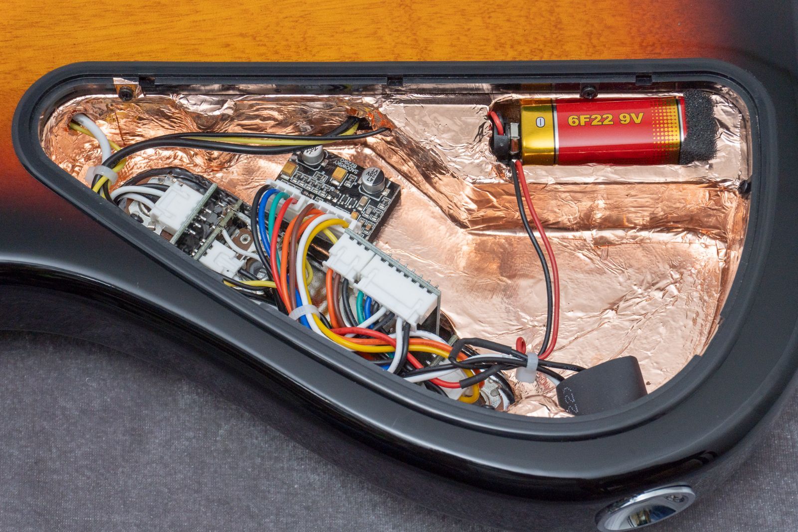 キャビティの中に目を向けると、銅箔テープでシールディングが施されていますね。素晴らしいです。