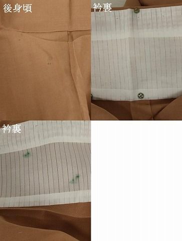 状態は接写画像のように後身頃・衿裏に薄い汚れ、衿裏にホックシミがございますが