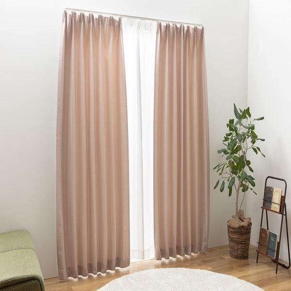 ブルーとピンクの2配色展開。いずれのカラーも3級遮光の遮光機能が付いたドレープカーテンです。生地はしっかりとした厚みがあります。お部屋が暗くなりすぎず光を程よく取り込めます。ウェーブを綺麗に保つ“形状記憶加工”を施しており、洗濯しても型崩れしません。同色のタッセルとアジャスターフック(Aフック)が付属されております。