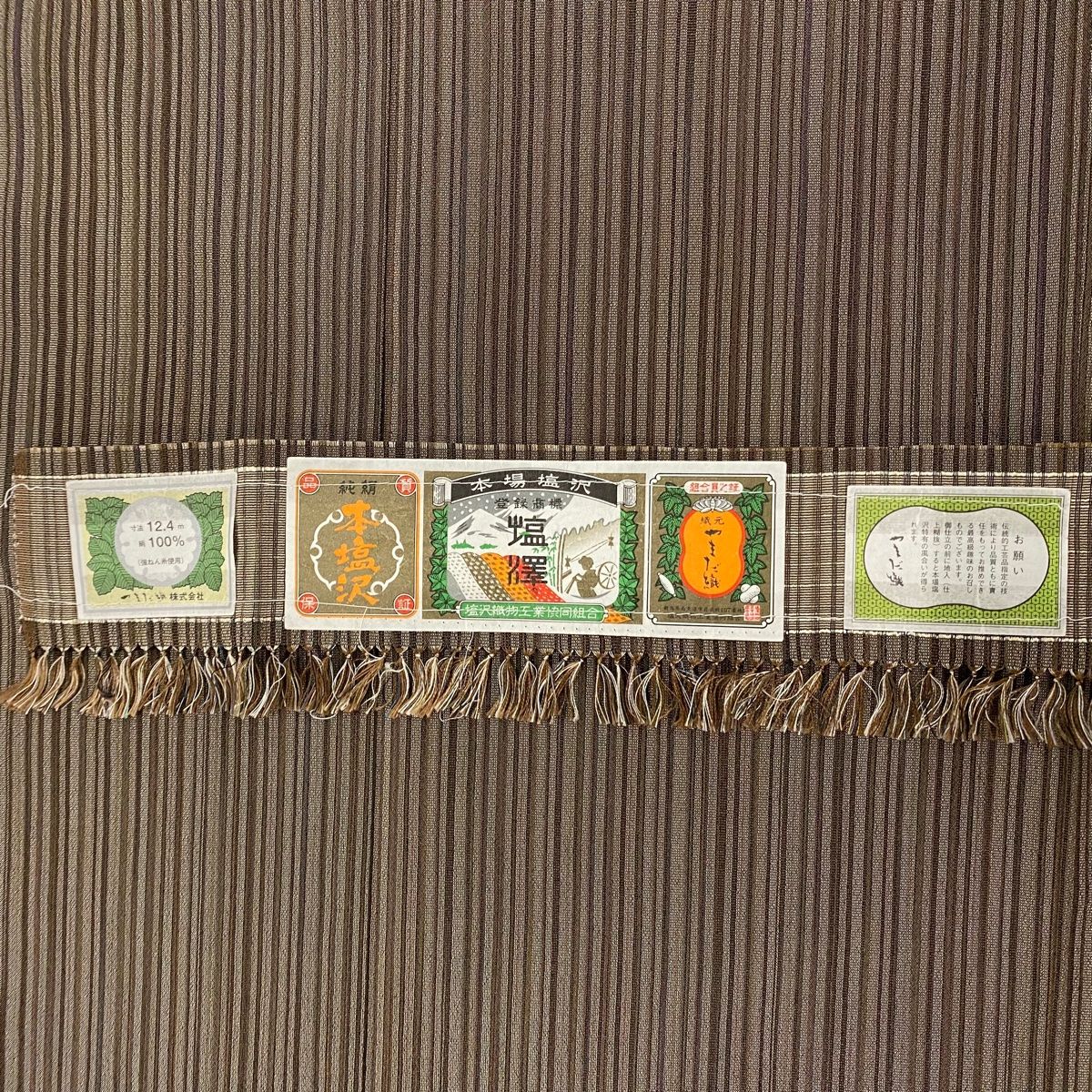 お召 身丈162 cm 裄丈67 M 袷 やまだ織 本塩沢 証紙 縦縞 焦茶色 正絹