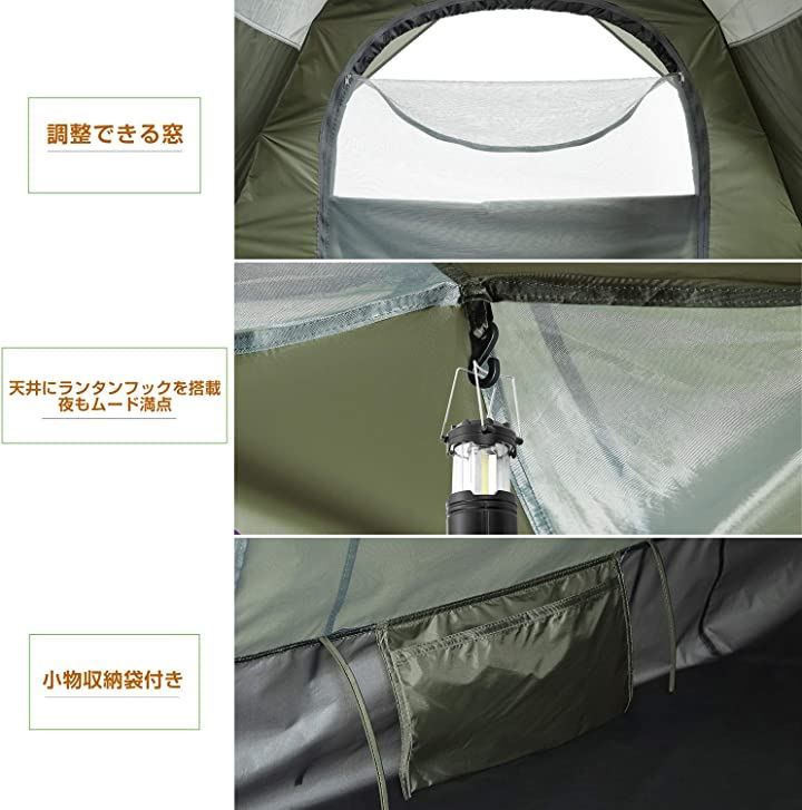 YACONE テント 3人用 ワンタッチテント 二重層 2 WAY 設営簡単 コンパクト uvカット加工 折りたたみ 防災用 キャンプ用品 アウトドア グリーン