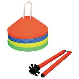 ●内容/カラースポット4色(オレンジ、青、黄、緑)×10枚、カラースティック、収納袋●サイズ/カラースポット:φ185×H50mm(穴径52mm)、スティックホルダー:φ25×425・830mm