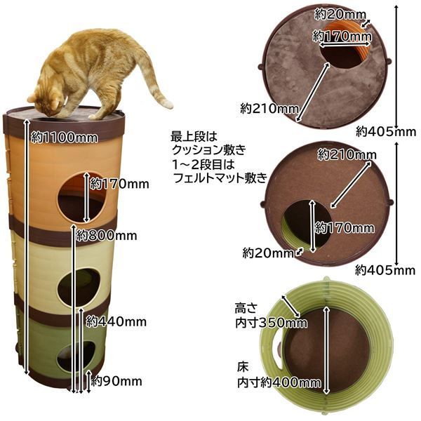 高いところが大好きな猫ちゃんにおすすめ!見晴らしの良い高さと隠れて安心な空間のあるキャットハウスです。