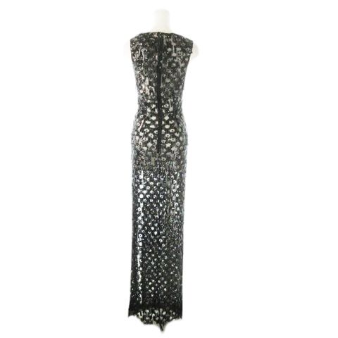 【商品名】エリザベッタ フランキ ELISABETTA FRANCHI ドレス フォーマル ワンピース ロング マキシ レイヤードネック ノースリーブ チュール シアー スパンコール 透け感 小さいサイズ 40 XS 黒 ブラック /AO21 ■GY18