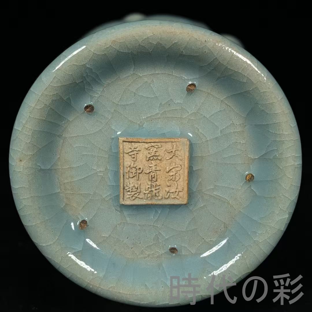中国古美術 宋代 汝窯 氷裂紋 銘文 三羊尊 青磁 古陶磁器 旧蔵 古賞物 古玩 時代物