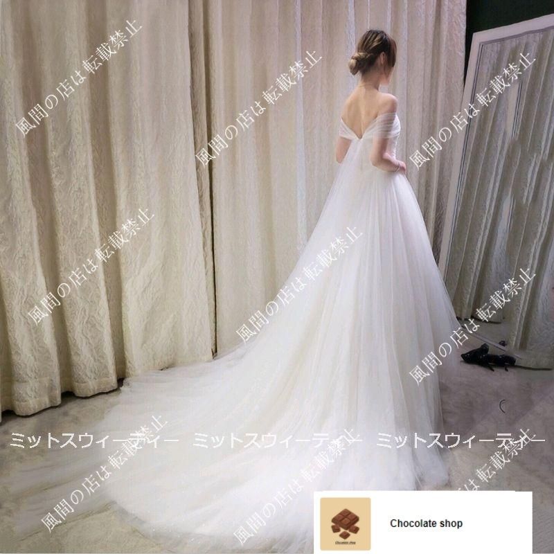 ウェディングドレス 花嫁 二次会 ウエディングドレス 結婚式 ロングドレス Aライン トレーン オフショルダー 白 海外挙式 披露宴 ブライダ ss アイテムCC 急上昇