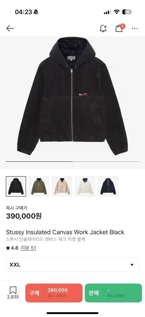 STUSSY インシュレーテッド キャンバス ワークジャケット ブラック XXL サイズです。