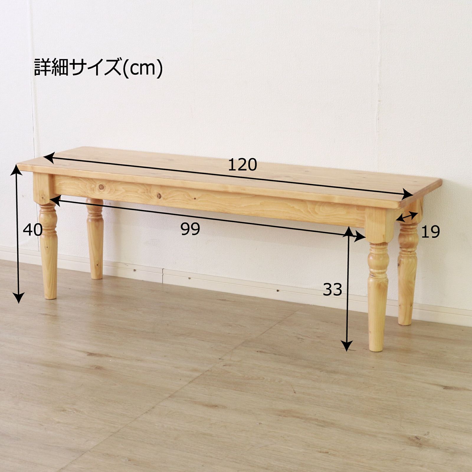 ダイニングベンチ ベンチチェア 2人掛け 天然木 北欧風 幅120 奥行36 高さ40 背もたれ無し 木製 ナチュラル おしゃれ