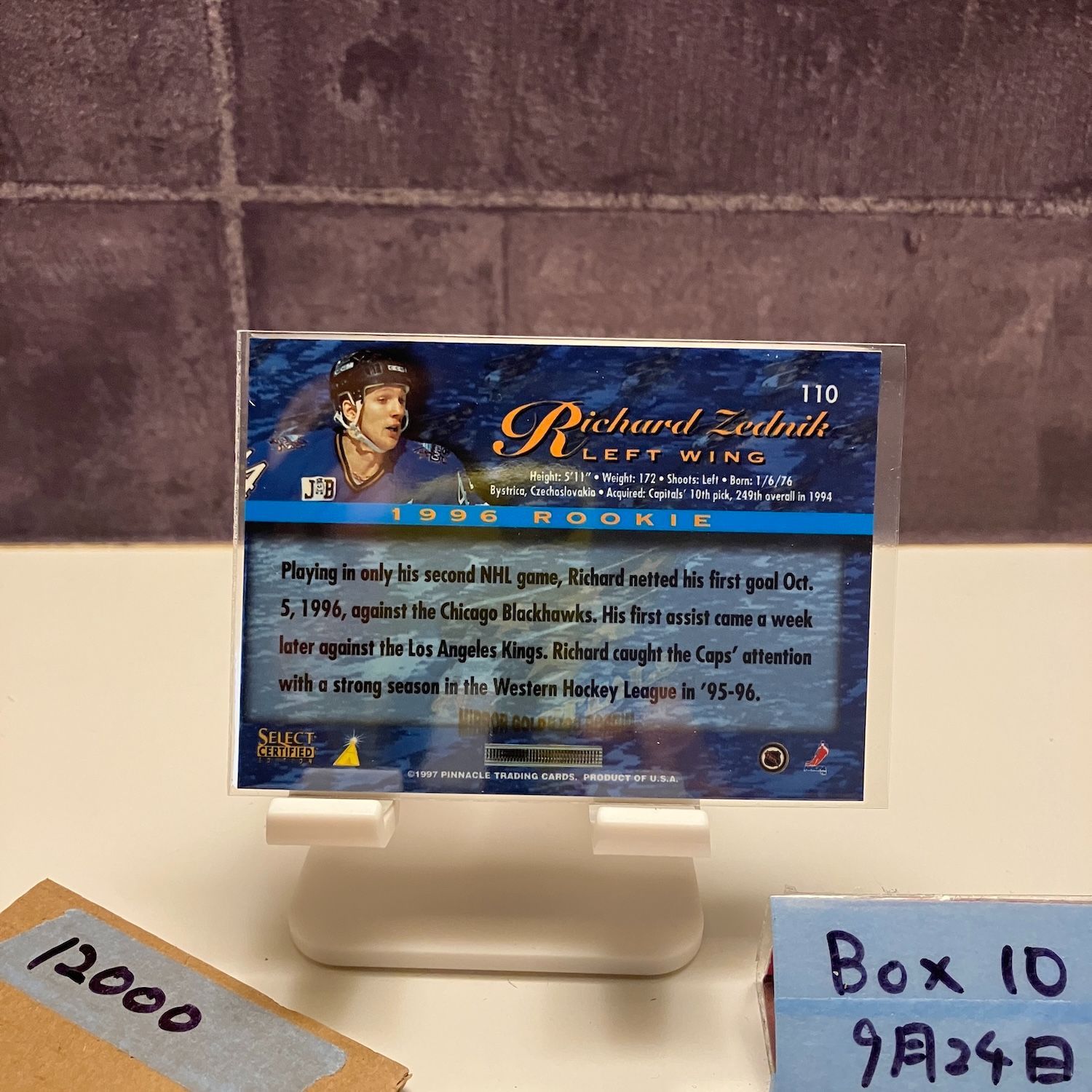 1997 Pinnacle Select Certified Richard Zednik Washington Capitals Protective Film Intact