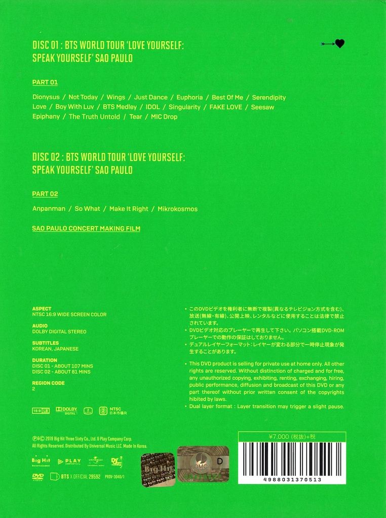 BTS DVD日本盤 LOVE YOURSELF SPEAK in SAO PAULO PAUL