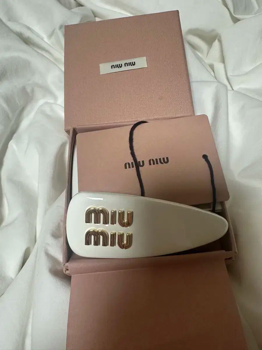 ミュウミュウのロゴが入ったヘアピン。ゴールドのロゴが入ったアイボリーカラーのヘアピンは高級感があります。ミュウミュウミュウ店舗でパンギョのヒュンダイ百貨店で買って、一度体力旅行に行ったことがあって、2~3時間くらいそのまま保管されていました。箱とパッケージ、さらにはショッピングバッグを含むフルセットを提供します。