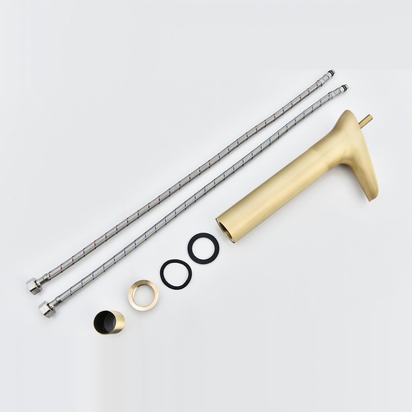 パッケージ詳細:蛇口本体*1、取り付けキット*1、ホース*2、日本語説明書*1。ホースには肉厚ナットが付属しています。アウターチューブは304ステンレス鋼の編組アウターチューブで、蛇口内のホースの圧縮と膨張を防ぐために特別に設計されたホースを介して接続されています。内管は特殊な素材で作られており、蛇口を長期間使用してもきれいな水を確保できます。