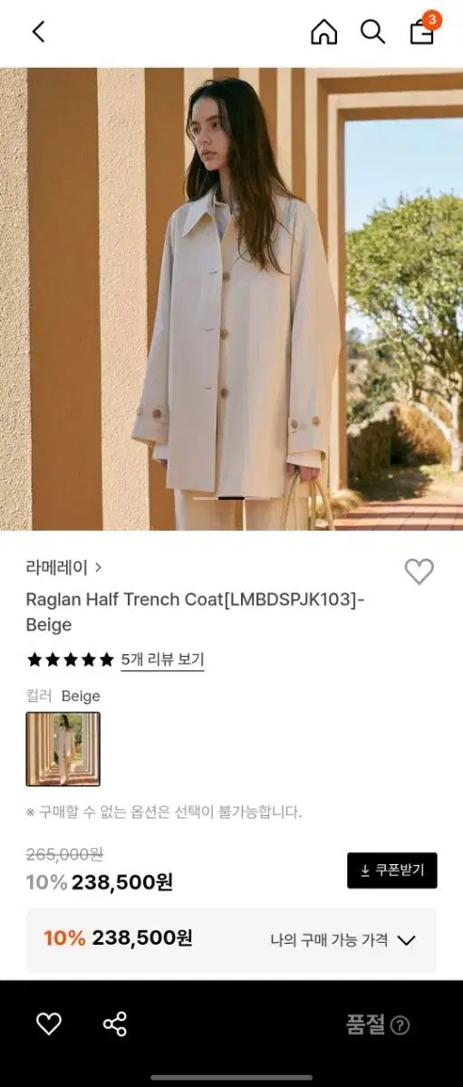 ベージュ色は今日の天気で着るのにぴったりです。
