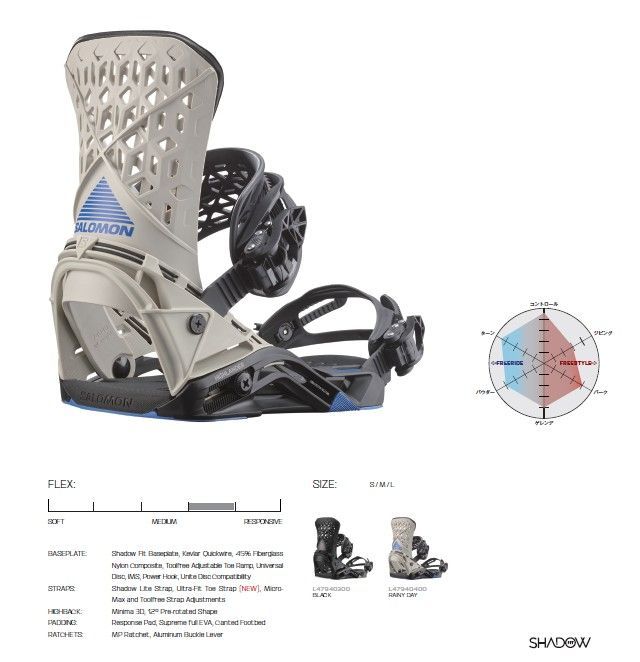 サポート力のある3Dミニマハイバックにレスポンスパッドを組み合わせ、正確なエネルギーの伝達を可能とし、ShadowFitが自然なブーツとの一体感と、高い快適性を一日中提供します。
