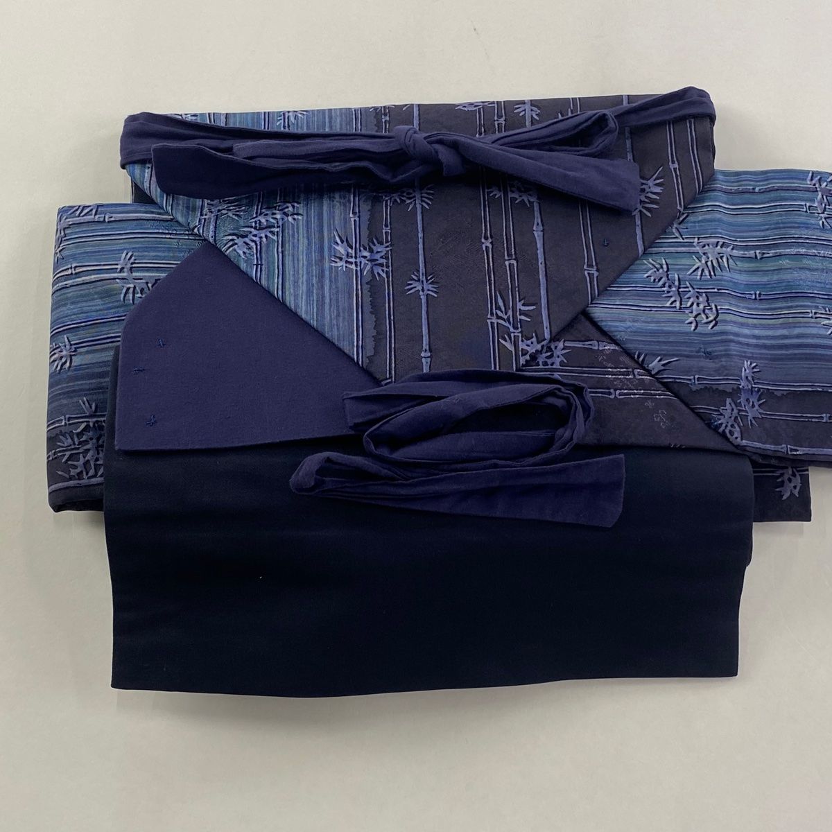 付け帯 秀品 作り帯 竹節縞 縞模様 紺色 正絹