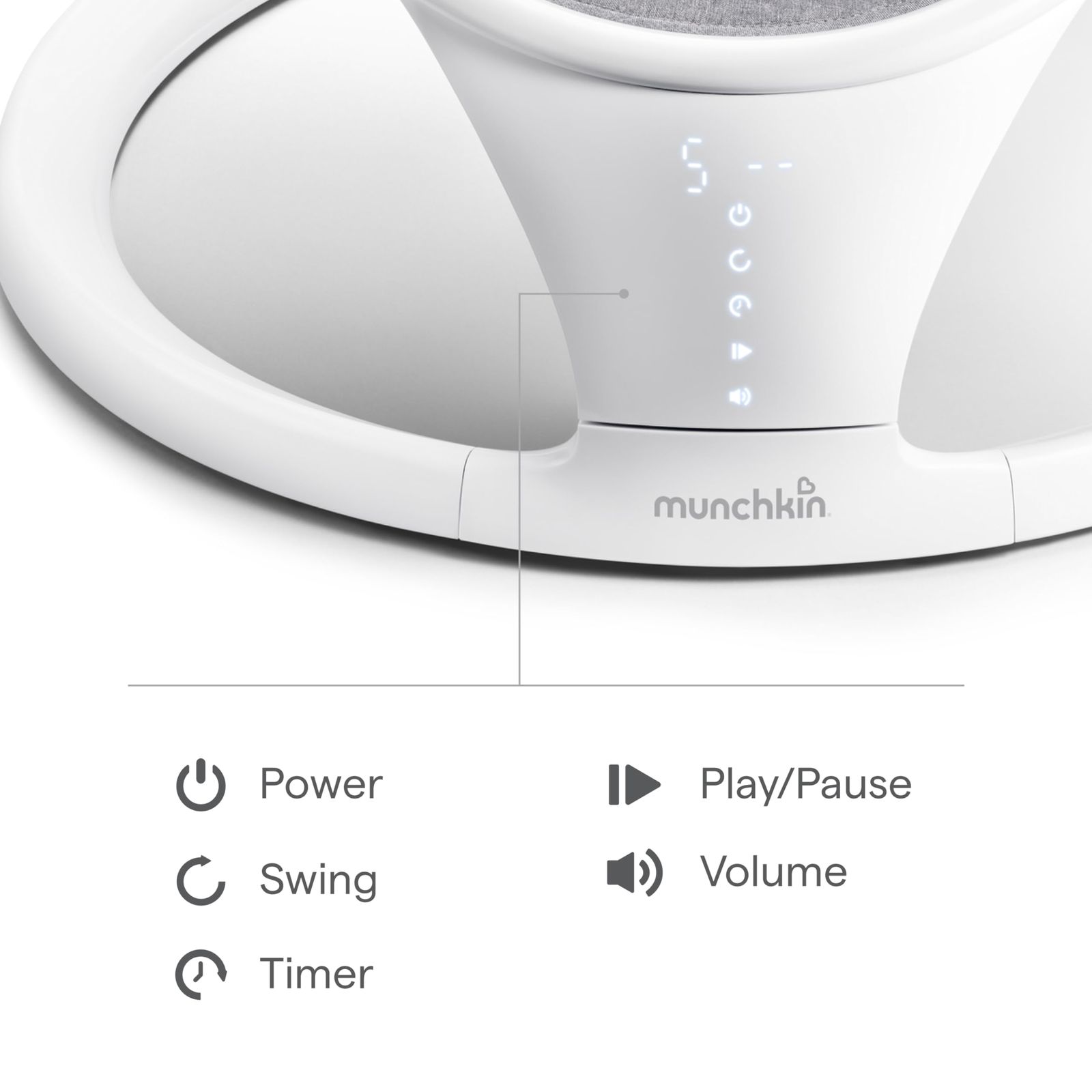 munchkin マンチキン 電動ベビースウィング ホワイト Bluetooth対応 5段階調整 リモコン付き 組立簡単 コンパクト収納 丸洗い 赤ちゃん用