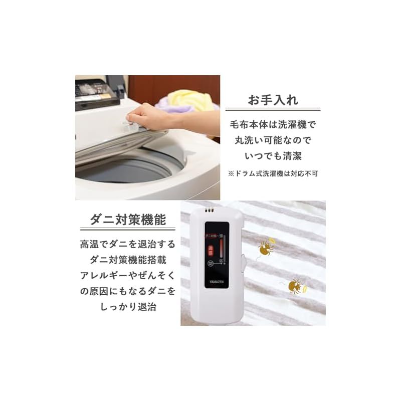 【お手入れ】毛布本体は洗濯機で丸洗い可能なので、いつでも清潔に気持ちよくお使いいただけます。コントローラーを取り外して洗濯してください。※ドラム式洗濯機は対応不可
