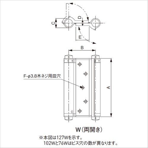 商品名:杉田エース 自由丁番W(両開き)76mm N-76W(127-314)2枚1組
