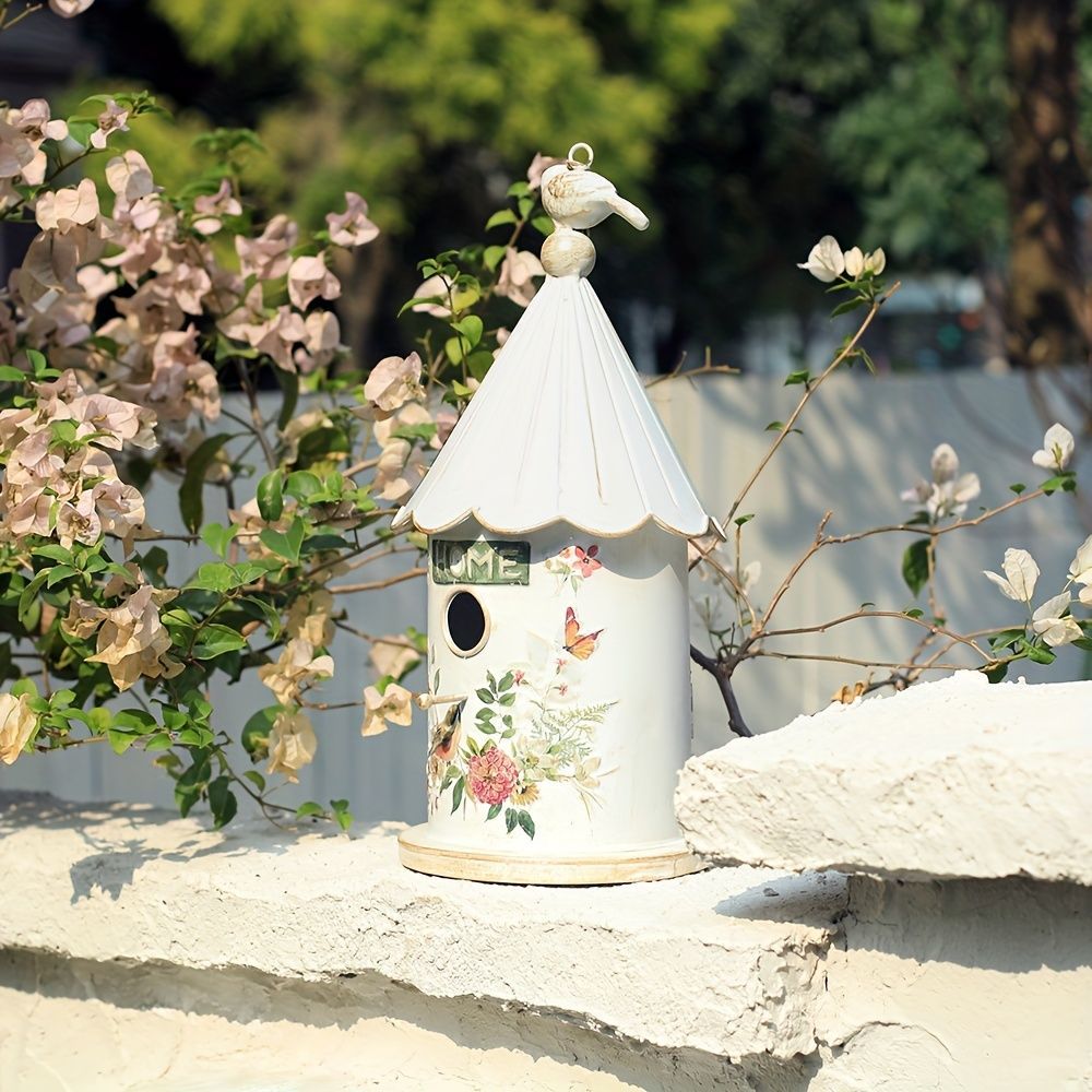 この巣箱は、鳥たちのための理想的な休憩所です。おしゃれな白いデザインが目を引き、お庭やベランダの自然な装飾としてもぴったり。金属素材を使用しており、耐久性が高く、長期間にわたって美しさを保ちます。