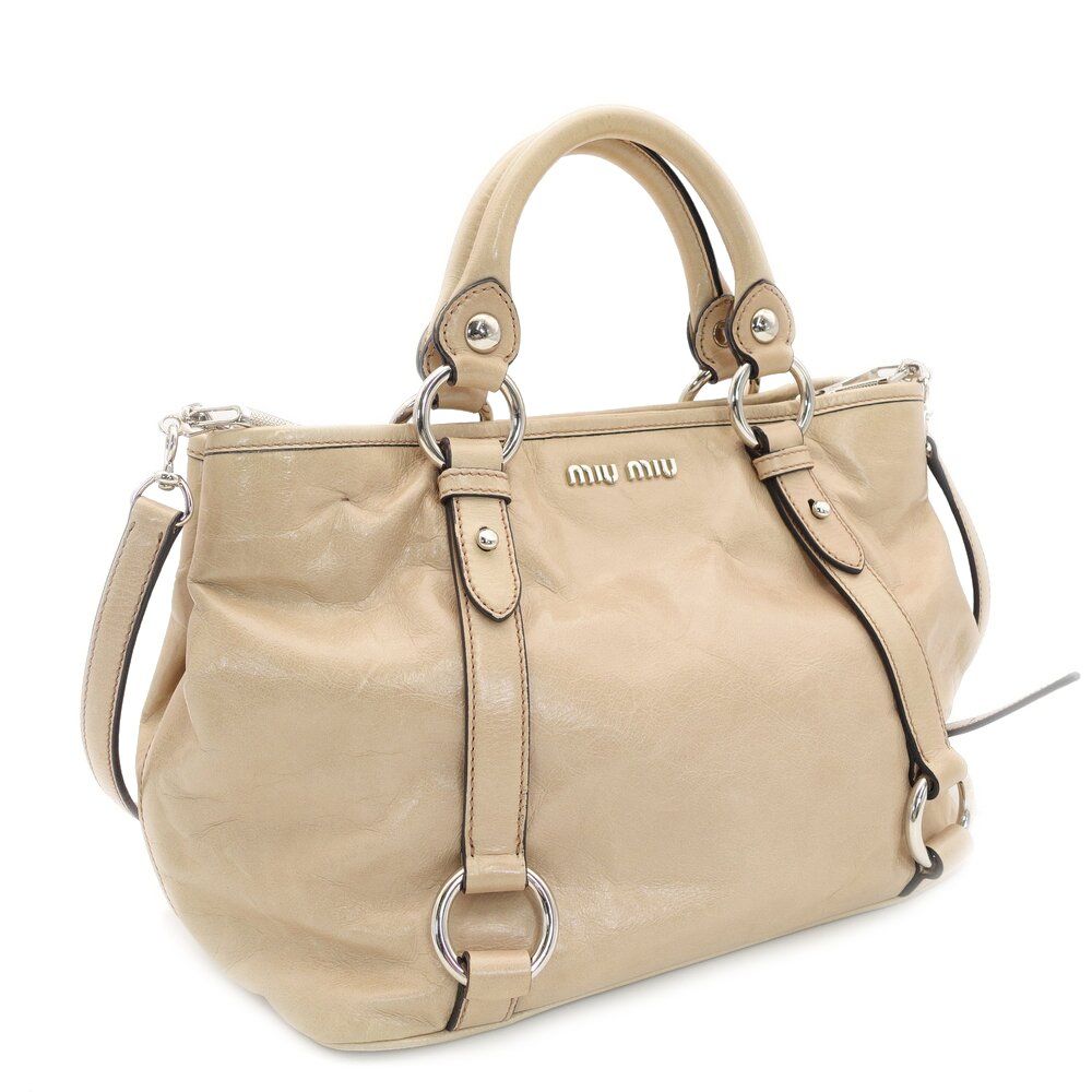 ミュウミュウ MIU ハンドバッグ パテントレザー ベージュ 2 way RN 0685 クロスボディ ロゴ シルバー金具 7-9-757