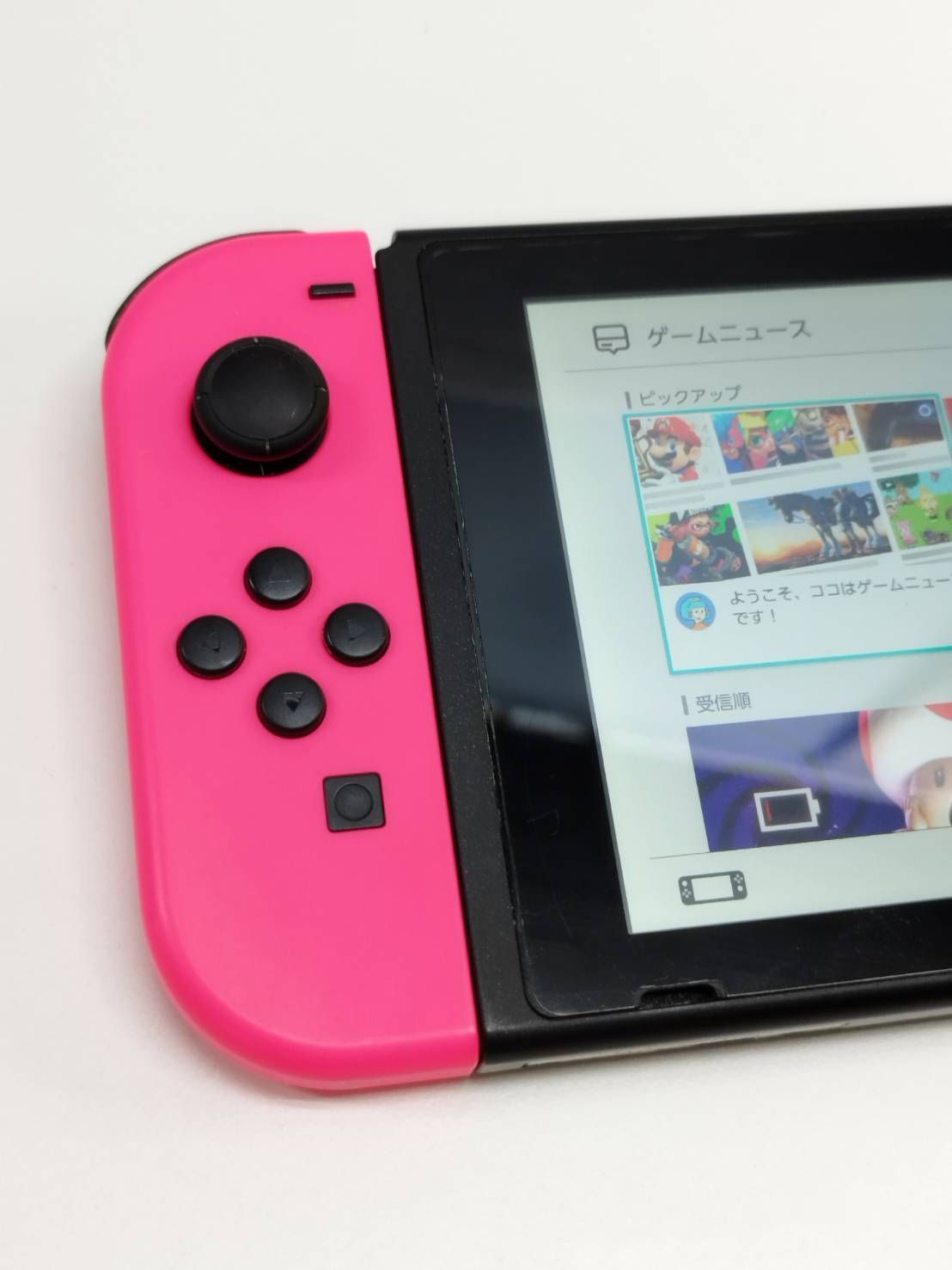本体やJoy-Conに擦り傷や隙間に汚れが見受けられます。やや使用感あり。