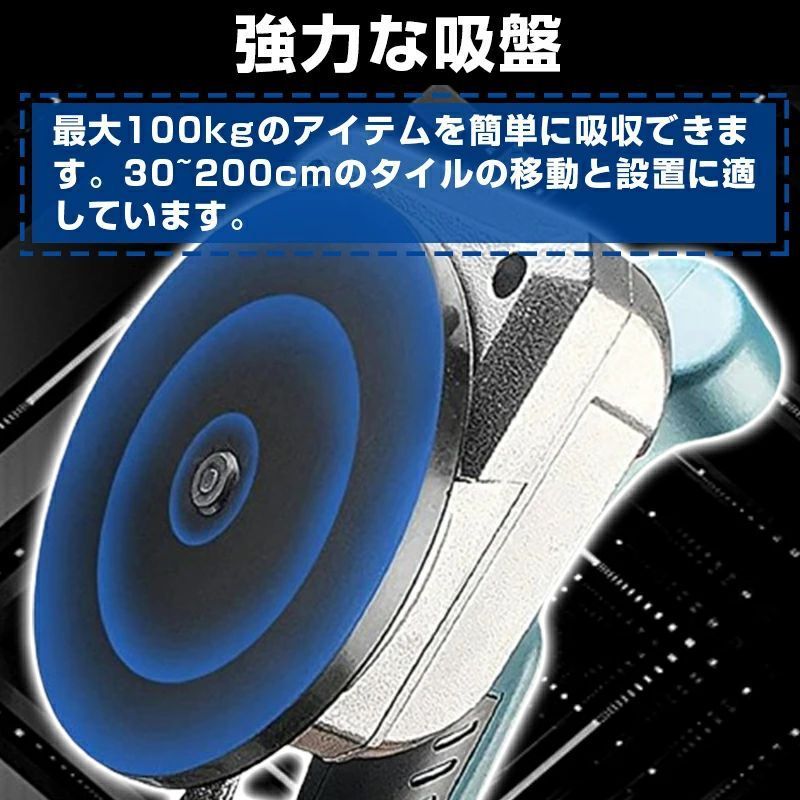 電気タイル張り機 タイル振動ツール 電動タイルパッチ 自動床敷設ツール 使用範囲30-120 cm 5段調整 最大吸着量100 kg 5つのギア調整 床 壁タイル敷設ツール振動工具 タイルビブラート 密着張り工法に対応 強力吸着盤なし バッテリー 充電器