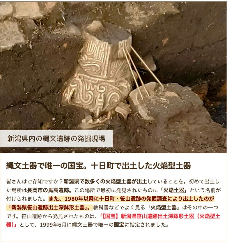 十日町市で出土した火焔型土器は、国宝に指定されています。燃え盛る炎のようなフォルムがエネルギッシュ!そんな火焔型土器がレプリカで蘇りました。お部屋に飾って、縄文時代に思いを馳せてください!