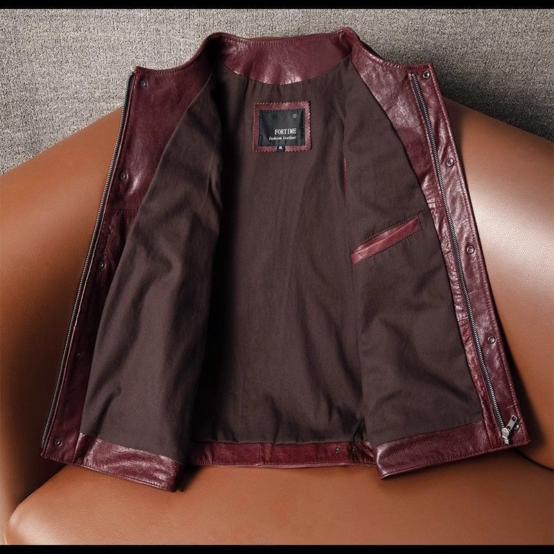 h ❗ 本革 レザーベスト メンズ レディース ユニセックス 山羊革 ゴートレザー 水洗い加工 ヴィンテージ風 ライダース風 ジレ ジャケット ワインレッド 秋冬 防風 保温 カジュアル ビジネス 感S-5 XL