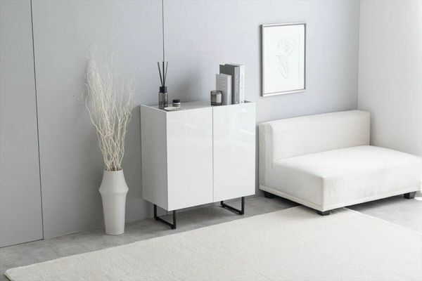 石目柄と鏡面の組み合わせが美しい『Anq(アンク)』シリーズのキャビネット。直線的なフラットデザインで、置くだけで落ち着いた大人な空間を演出します。また脚部は取り外しができ、脚あり・脚なしの2WAYで使用することが可能。さらにスリムなのに大容量収納もでき、使い勝手も抜群です。