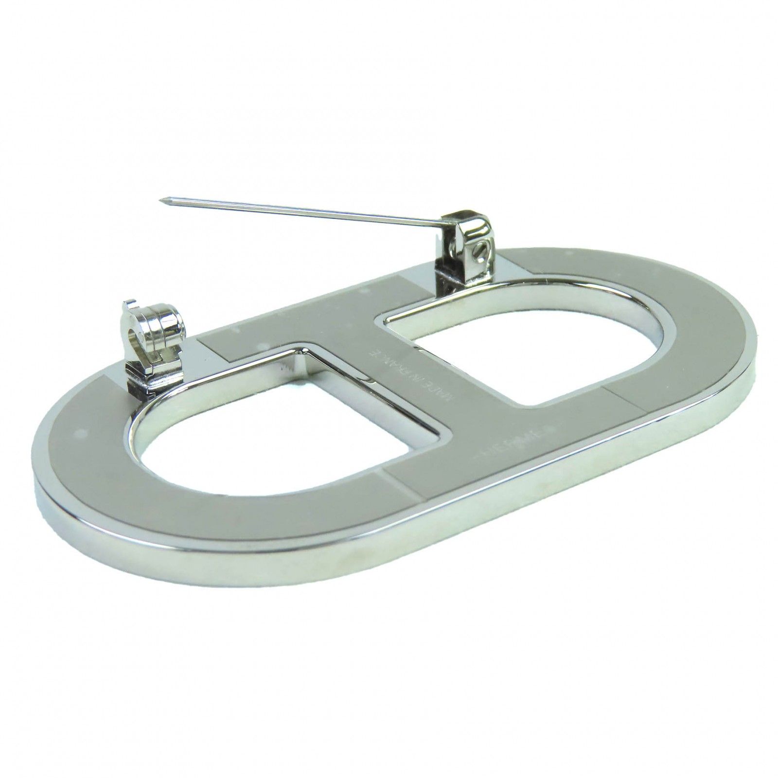 HERMES エルメス シェーヌ ダンクル ブローチ レザー シルバー金具 ブラック 箱 保存袋付き フランス製 レディース
