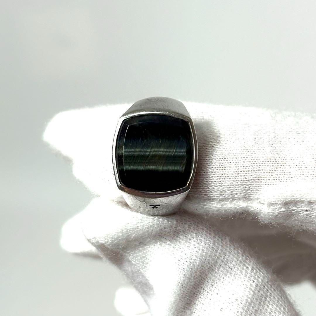 クッション・ブルーホークアイは、カスタムカットのブルーホークアイをなめらかなベゼルに丁寧に手作業でセットしたクラシックなシグネットリングです。ブルーホークアイは、感情のバランスを整え、ストレスを軽減し、冷静さを高めると信じられているヒーリングストーンです。