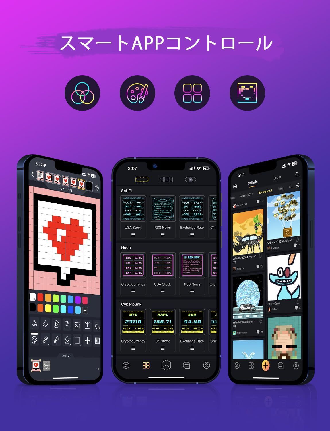 【ピクセルアートコミュニティ】-- 想像力を解き放ち、個性的なピクセルアートを作成しましょう。Divoomアプリの数百万のピクセルアートデザインのライブラリを使って、アニメーション、テキストなどの表示内容を簡単にカスタマイズすることもできます。これはあなたのユニークなスタイルと創造力を反映した画面です。タイムズゲートは、単なるクールなピクセルディスプレイにとどまらず、生活とテクノロジーのシームレスな統合の象徴でもあります。