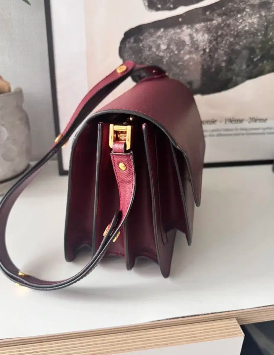 ミディアムサイズ マルニ トランクバッグです。バーガンディ カラーで高級感があり、クロス 紐がないのでお安く出品します。普段 ショルダーバッグとして持ち歩く方におすすめです!コメントない場合はすぐに安全決済してください!