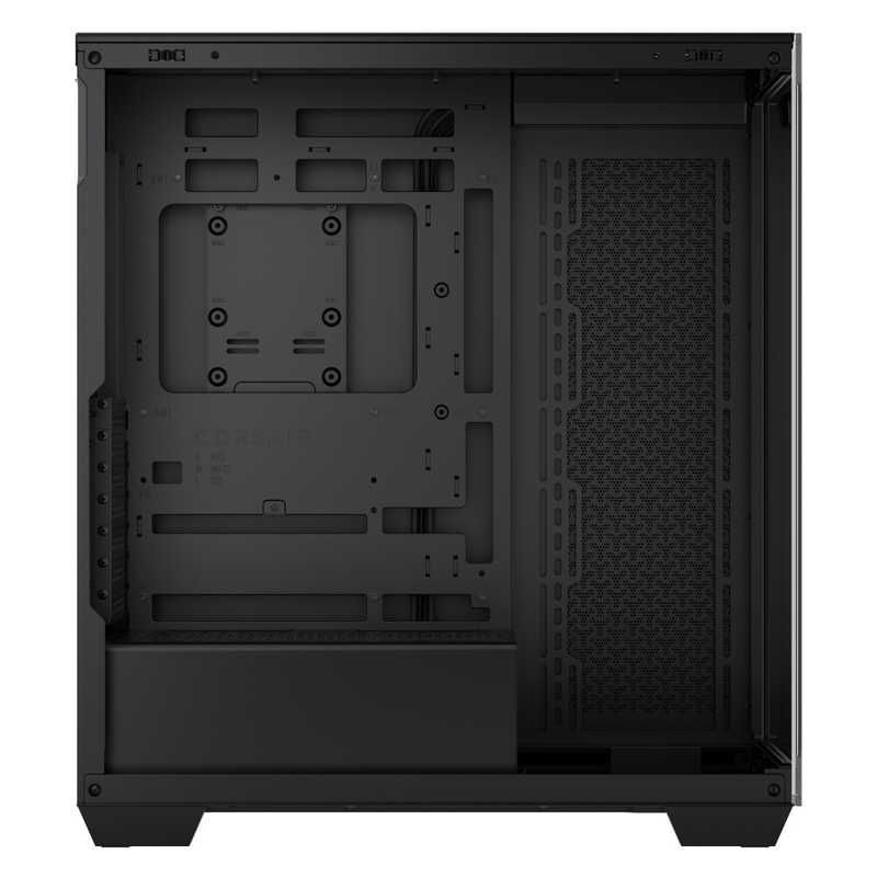 ドレスアップを楽しめるピラーレスデザインを採用。背面コネクタ設計のマザーボードに対応するミドルタワー型PCケース